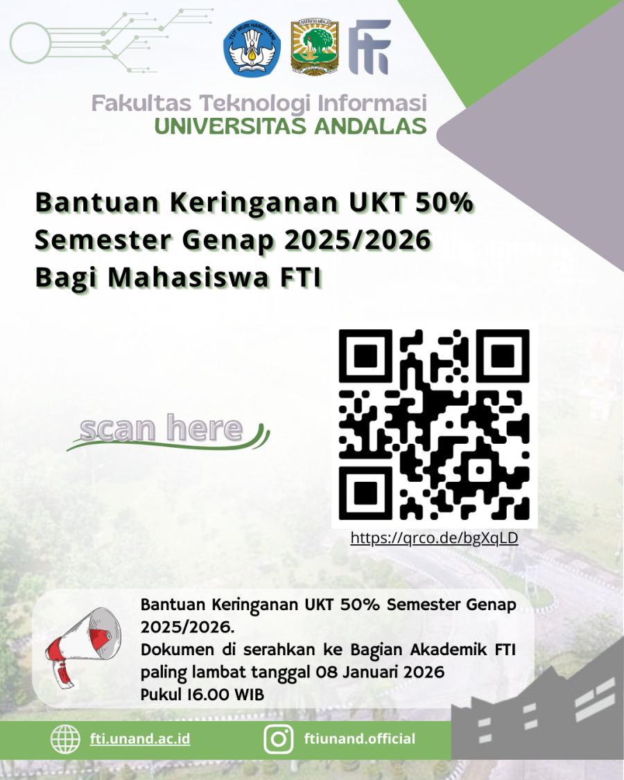 Menindak lanjuti Surat Rektor No B/2173/UN16.R/KM.05/2025, maka disampaikan sebagai berikut persyaratan dan administrasi yang harus dilengkapi oleh mahasiswa yang akan mengajukan permohonan keringanan UKT 50 % Semester Genap 2025/2026.